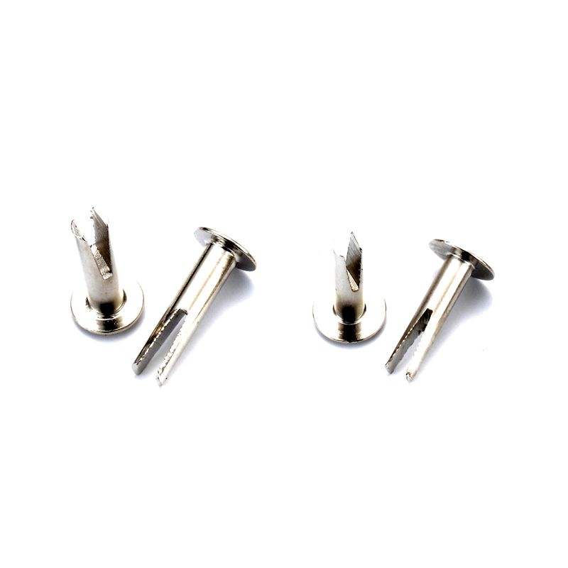 Os rebites divididos são normalmente usados nas indústrias de malas, estojos e artigos de couro para fixar materiais macios, como plásticos, peles de animais e madeira.Com equipamento de configuração automática, ele pode perfurar materiais macios sem um furo pré-perfurado.Normalmente oferecido em aço ou latão com uma série de acabamentos metálicos, como zinco, níquel ou latão.